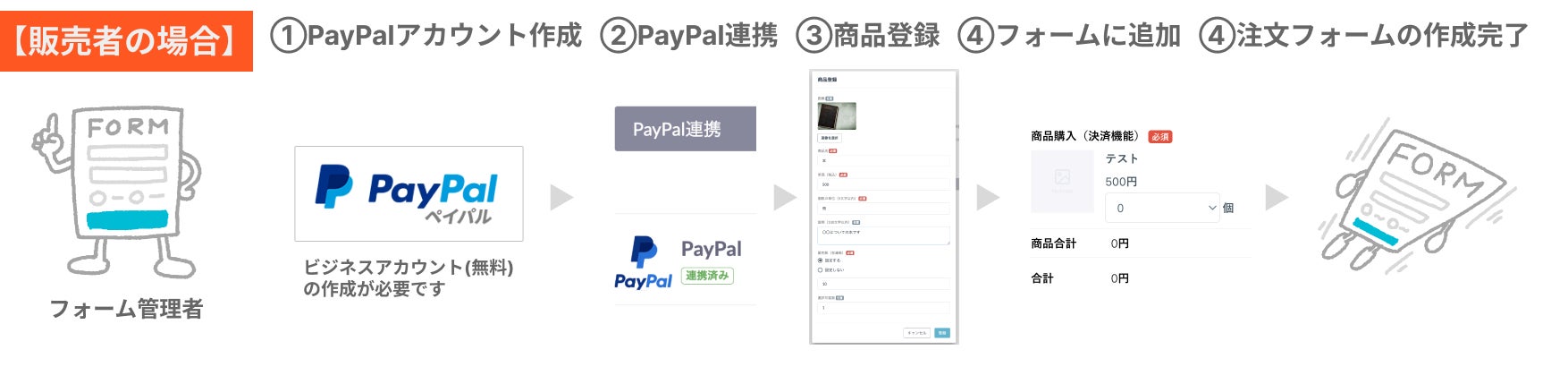 決済機能付きフォームは以下の手順で進める必要があります。