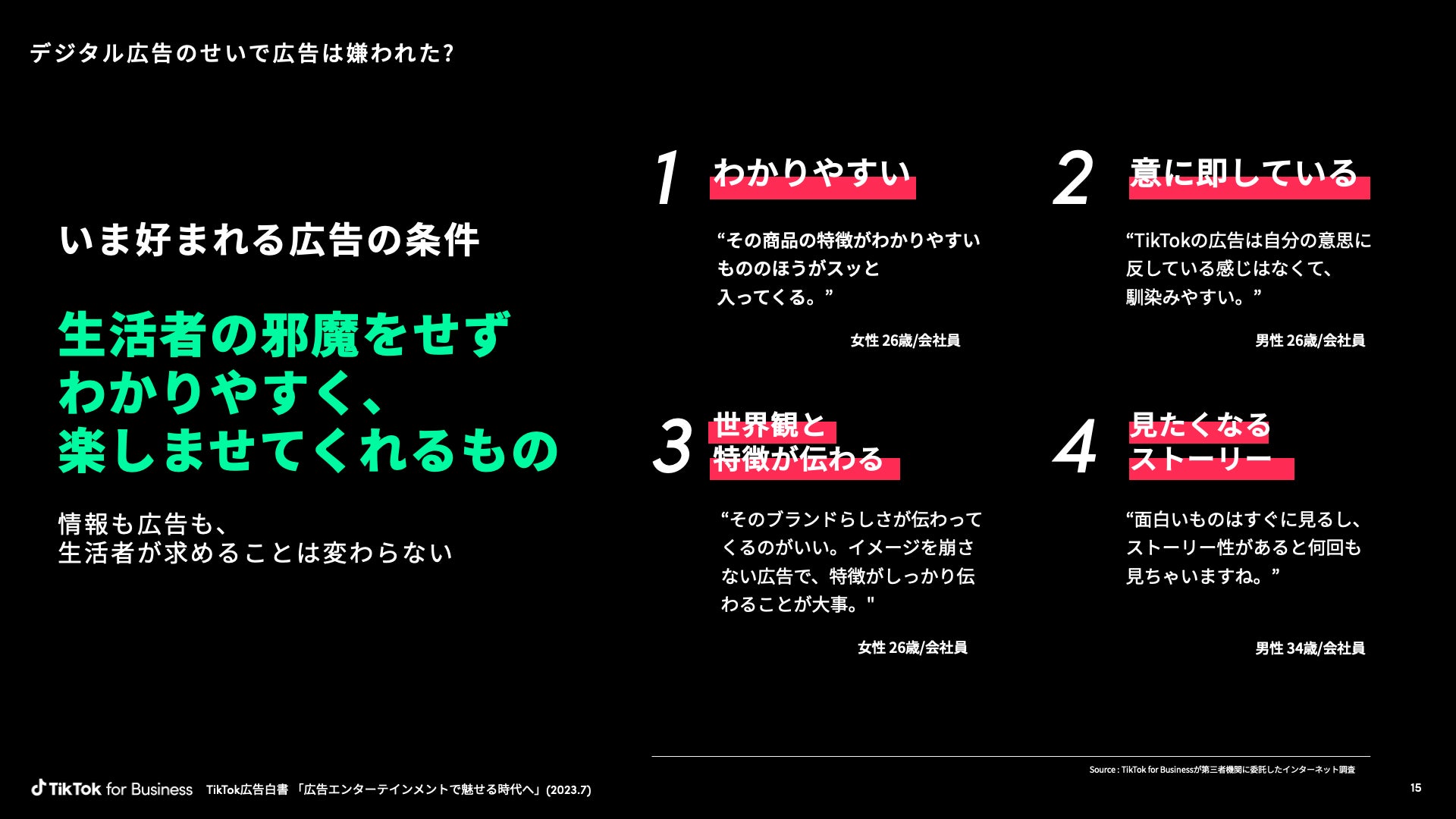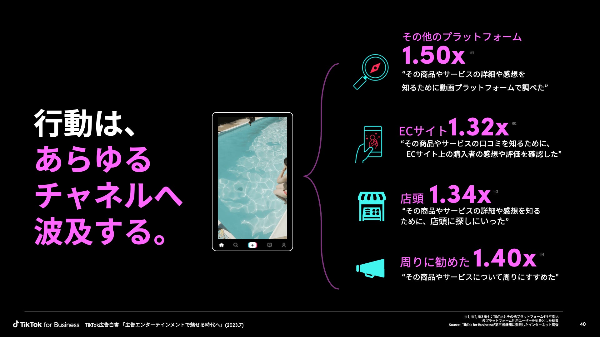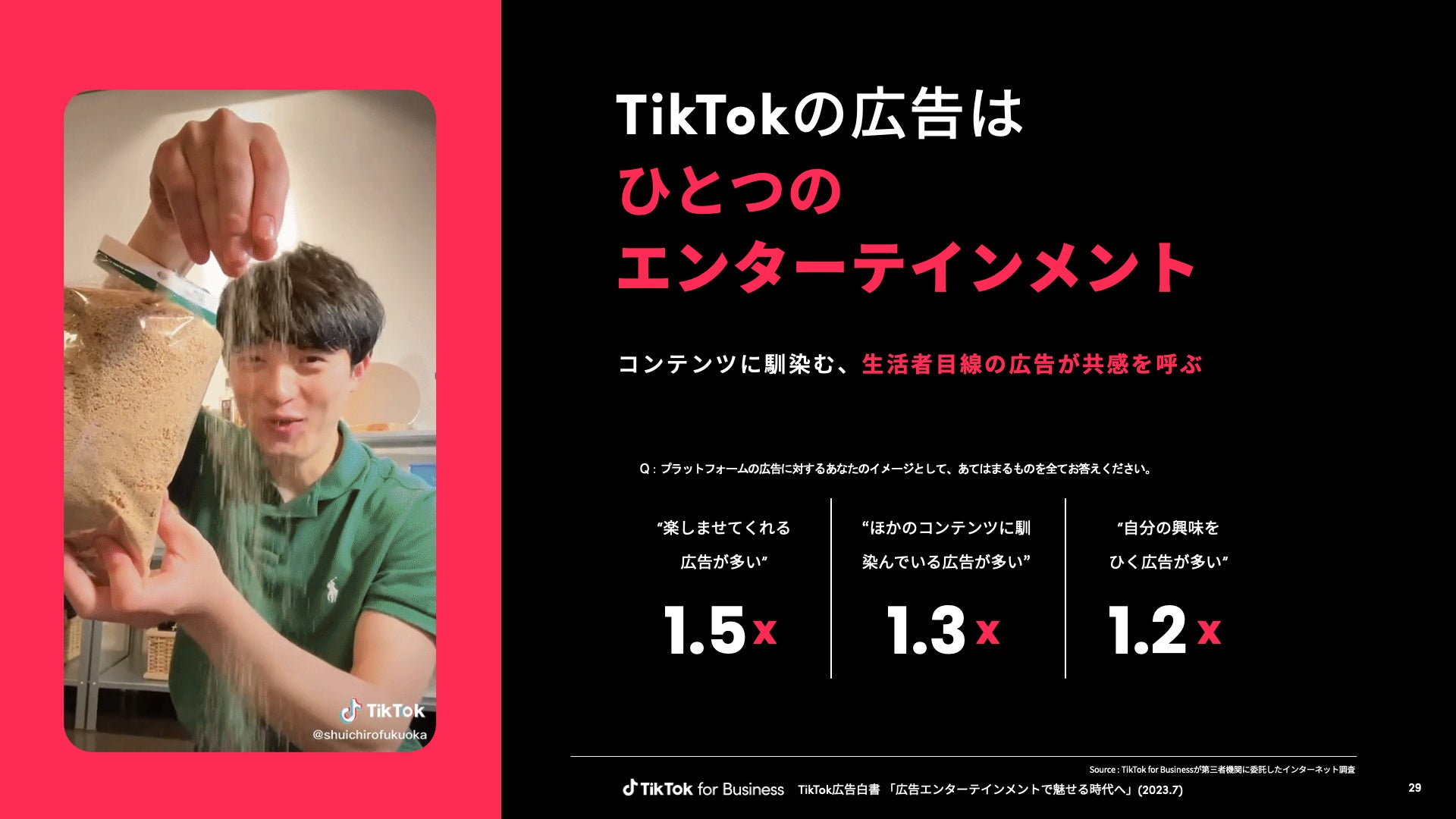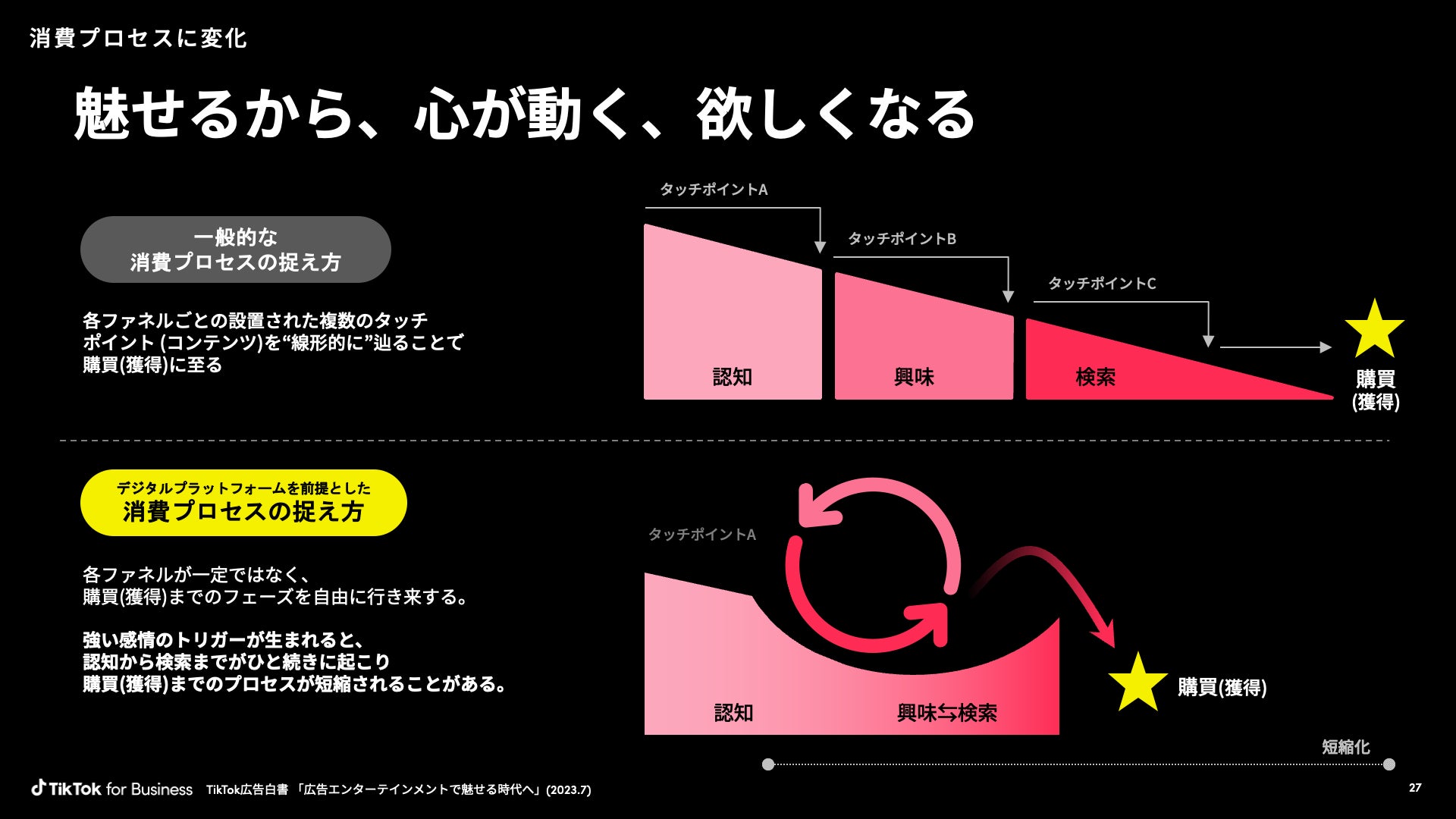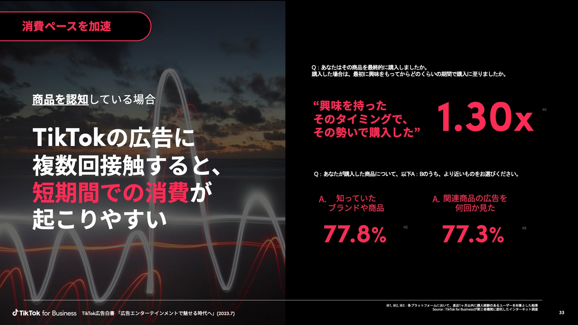 出典:TikTok広告白書 〜広告エンターテインメントで魅せる時代へ。TikTokが消費プロセスを変革する理由とは?〜(2023.7): https://tiktok-for-business.co.jp/archives/15007/