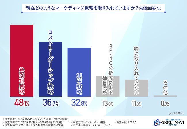 およそ半数の企業が差別化戦略を取り入れていることが判明しました。