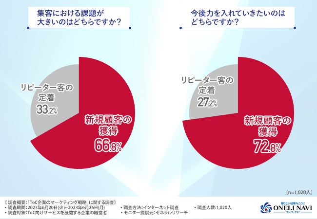 そこで今回、オールジャンルのポータルサイト『ワンリーナビ』(https://onelinavi.com/)の運営を行っている株式会社ワンリーリステッドは、ToC向けサービスを展開する企業の経営者を対象に、「ToC企業のマーケティング戦略」に関する調査を実施しました。