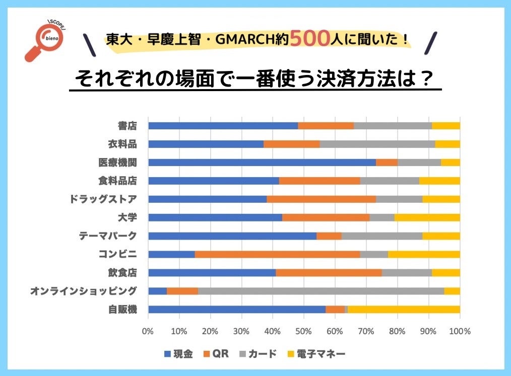 持ち歩く現金が比較的少ない大学生でも、場面によって支払い方法を使い分けているはず…