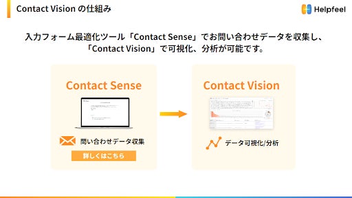 「Contact Vision」は、Helpfeelの問い合わせフォームにある検索機能「Contact Sense(※1)」で集めた問い合わせの自然文を解析するツールです。