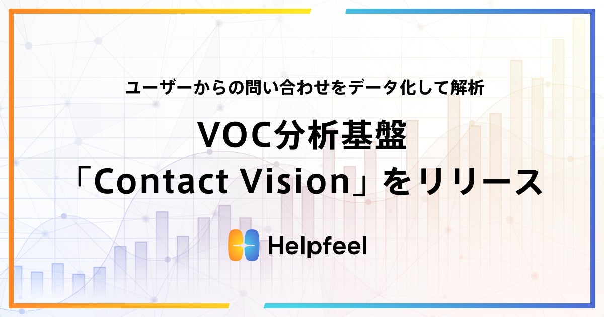 「テクノロジーの発明により、人の可能性を拡張する」をビジョンに掲げ、人がより使いやすい検索技術を開発するHelpfeel(京都府京都市 代表取締役/CEO:洛西一周 以下、当社https://corp.helpfeel.com/ja/home)は、問い合わせをデータ化して解析するVOC(Voice Of Customer)分析基盤「Contact Vision」をリリースしました。