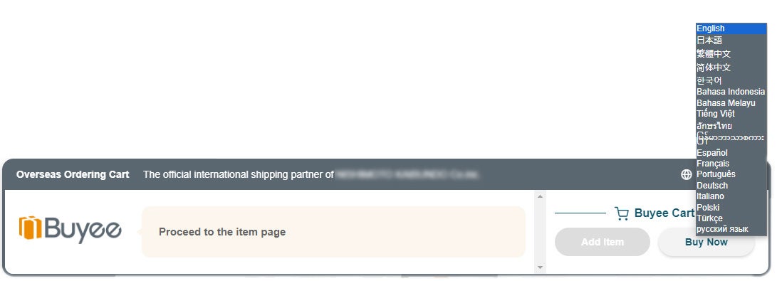【Buyee Connect:導入サイトに表示される専用カート上で言語が選択できます】