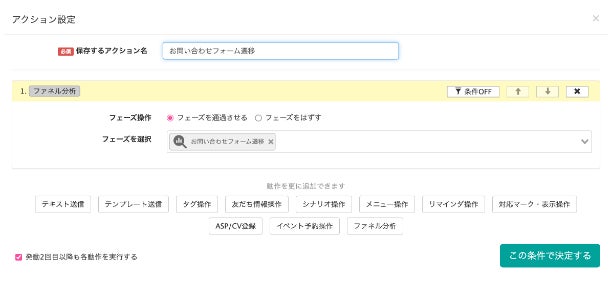 ②Liny内の各アクション(フォーム回答時やURLクリック時など)にフェーズを紐付け