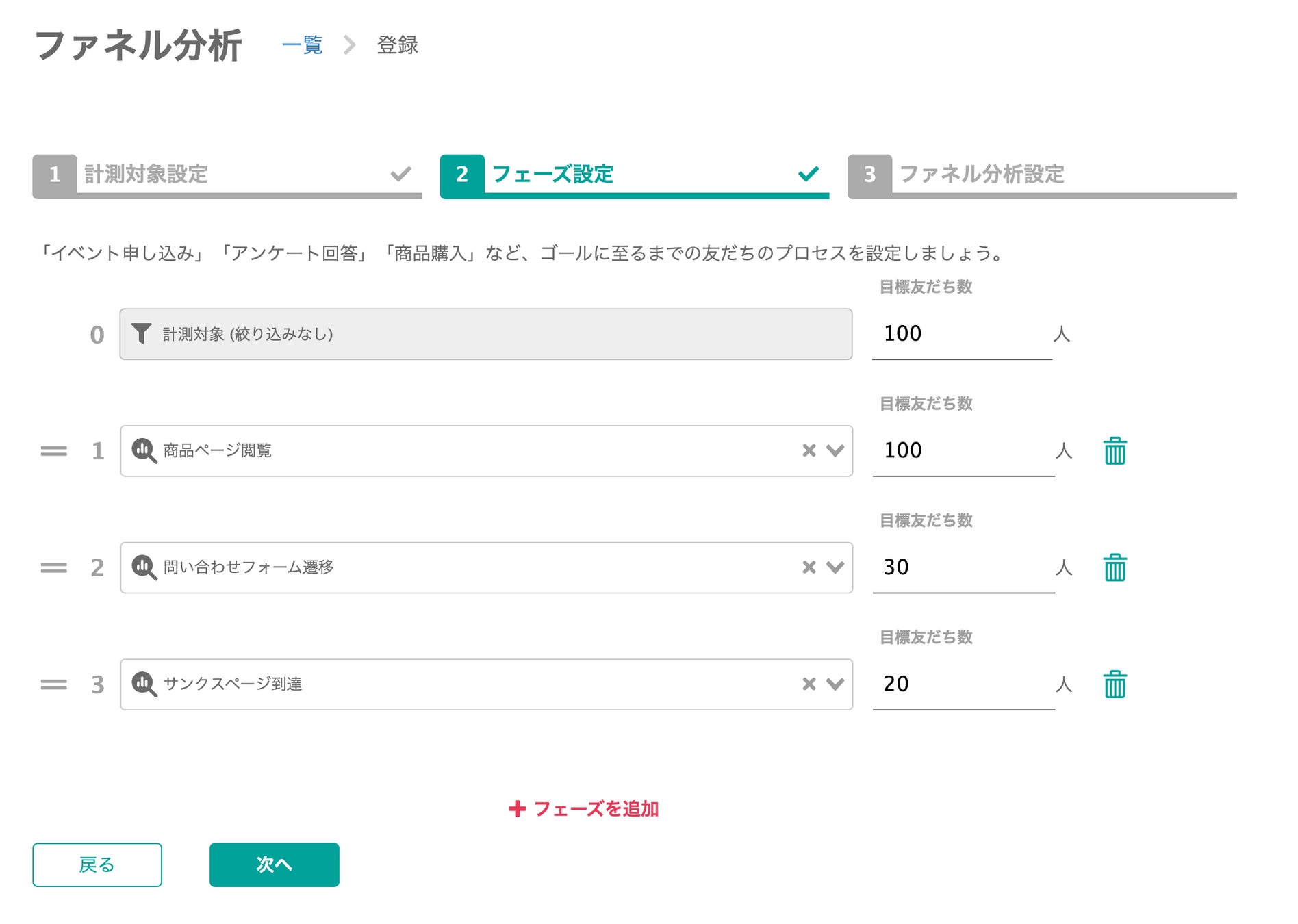 ①フェーズを設定しフェーズごとに目標の友だち人数を設定