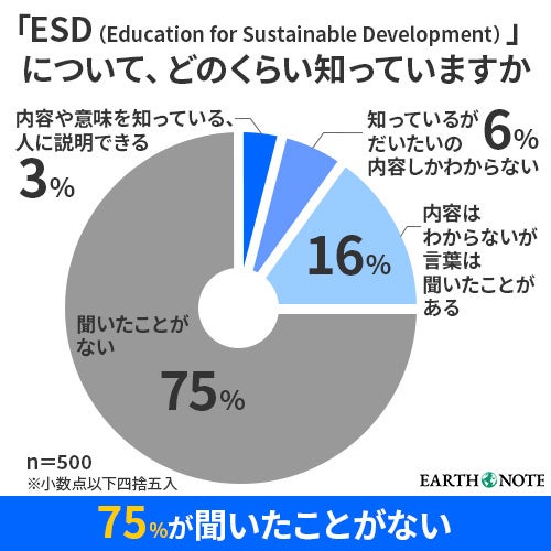 ESD(Education for Sustainable Development)は「聞いたことがない」の回答が75%になりました。