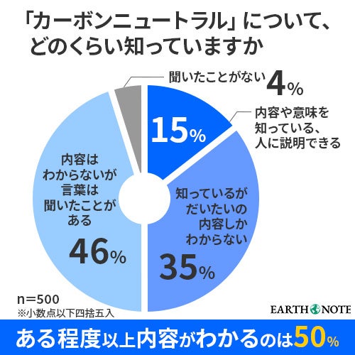 - 「カーボンニュートラル」の内容をある程度以上知っている人は50%