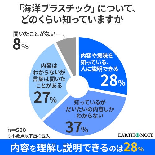 海洋プラスチックは「内容や意味を知っている、人に説明できる」が28%となり、今回の調査対象用語の中で最も多い結果となりました。