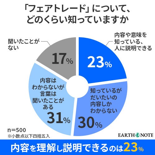 - 「フェアトレード」の内容や意味を知っている人は23%