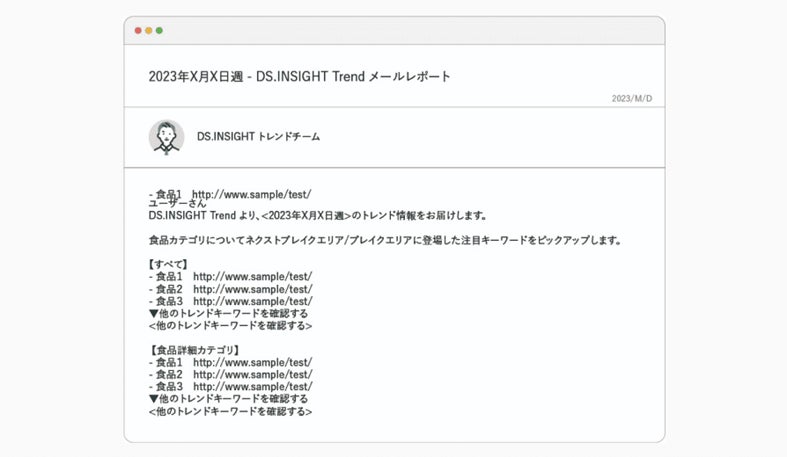 設定したカテゴリのトレンドキーワードをピックアップして週1回メールで配信します。メールの受信設定をすることで、最新のトレンド情報を知ることができます。