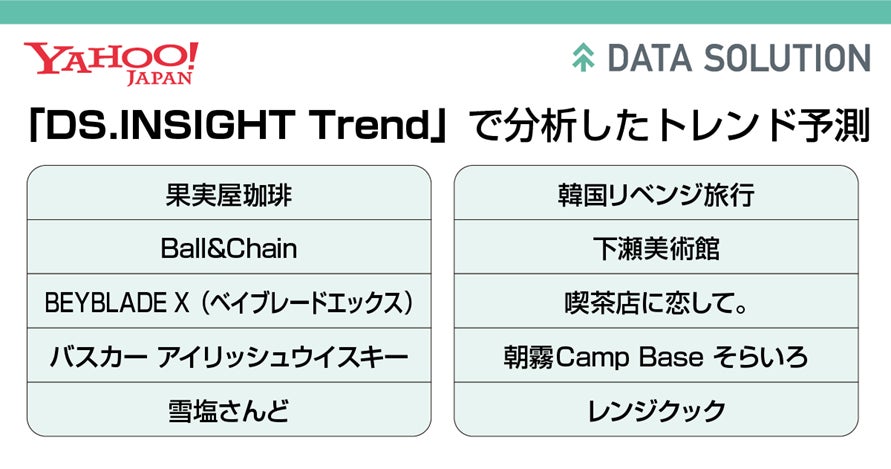さらに、データソリューションサービスでは、Yahoo! JAPANのビッグデータとAIを活用したヒット予測モデル「商品トレンドマップ」を構築し、活用したレポートを2022年12月に公開しました(※2)。レポート公開後にさまざまな企業から、「商品トレンドマップ」を利用したいとの希望を多数いただいたことに加え、変化の激しい市況の中で、少しでも早く消費者ニーズや流行の兆しを把握していただきたく、「DS.INSIGHT」の新機能「DS.INSIGHT Trend」として提供します。