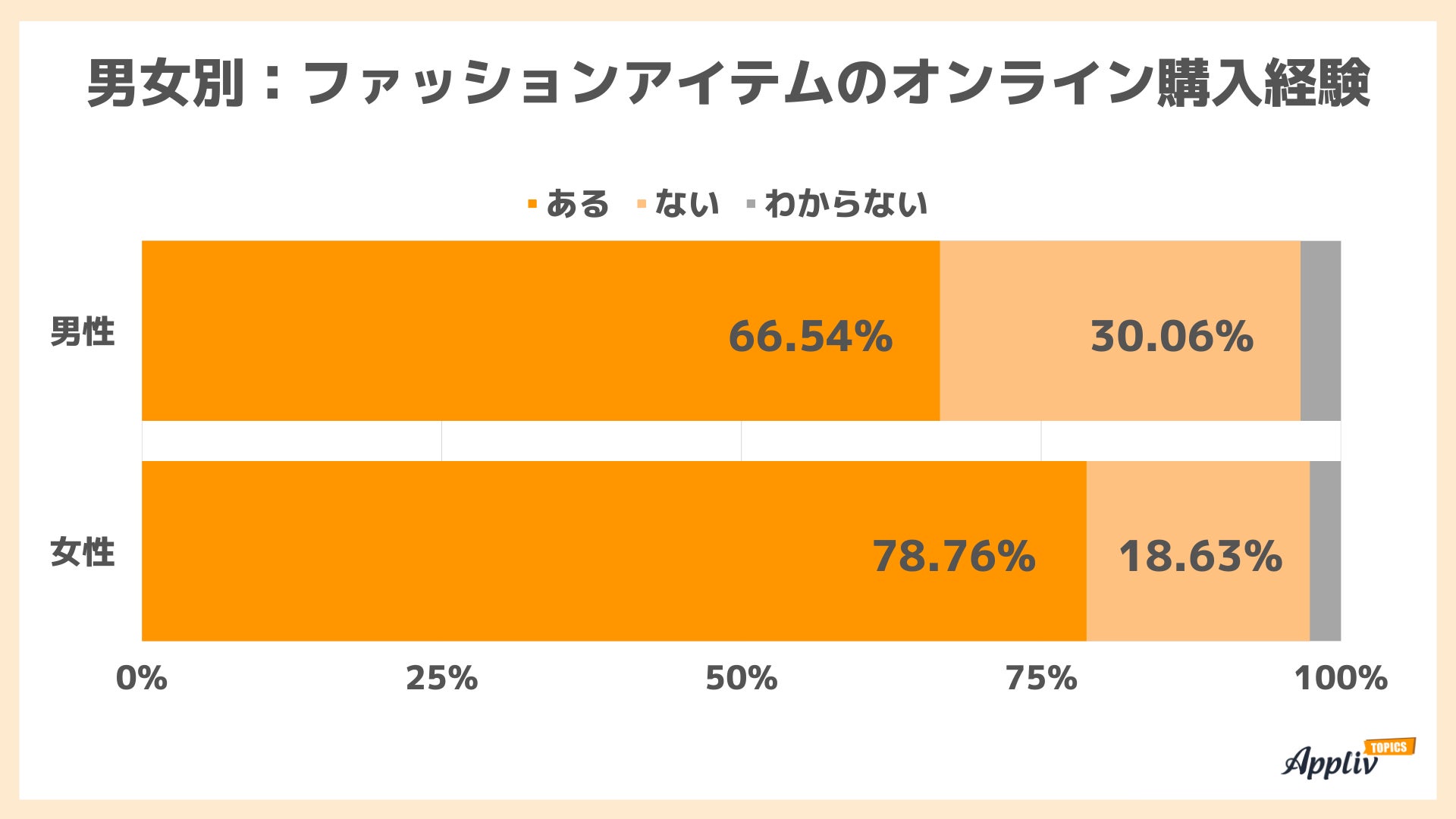 • ファッションアイテムのオンライン購入経験がある人は7割 女性の方が多い