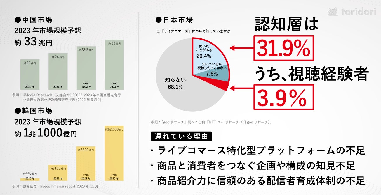 Eコマース市場規模では日本に次ぐ世界5位※1の韓国では、ライブコマース市場は年々成長しており、2023年には10兆ウォン(約1兆1000億円)規模まで拡大すると予想されています※4。