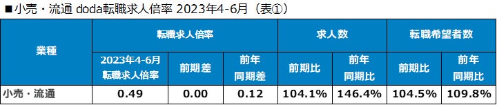 パーソルキャリア株式会社が運営する、転職サービス「doda(デューダ)」は、2023年4-6月期の小売・流通業界の転職求人倍率や転職市場動向をまとめた「業界版doda転職市場動向レポート」を発表いたします。なお、本業界の最新動向は、doda編集長 加々美祐介が解説します。