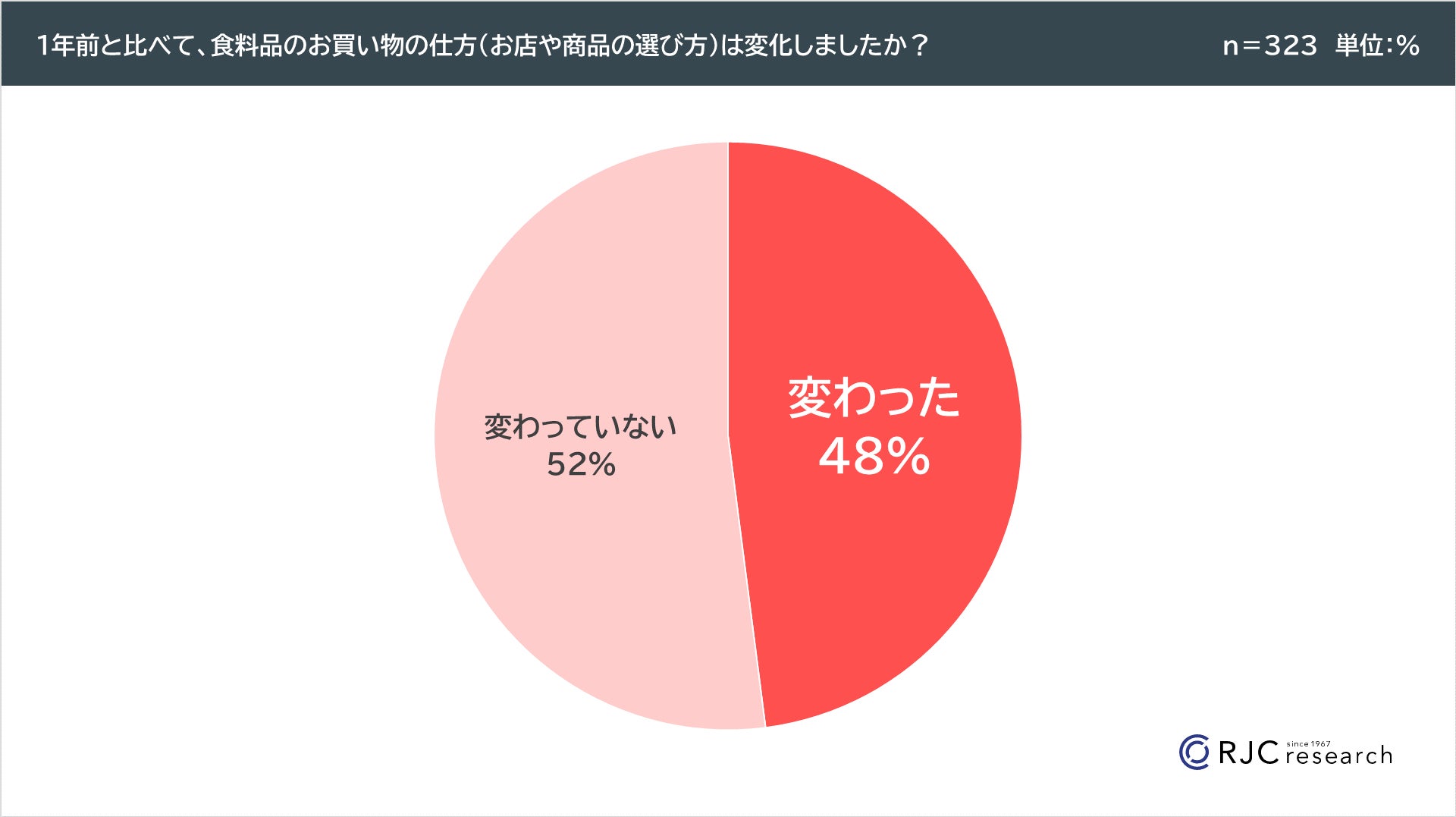 ・1年前と比べて、48%が 「お店・商品の選び方が変わった」 と回答。