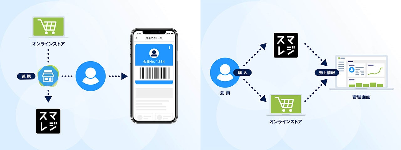 Shopifyとスマレジ間で顧客情報を連携し、会員証を作成。スマレジ上で発生した会員の購買履歴も、自動的にShopifyに連携されます。店舗とECでのポイント一元化も実現可能。