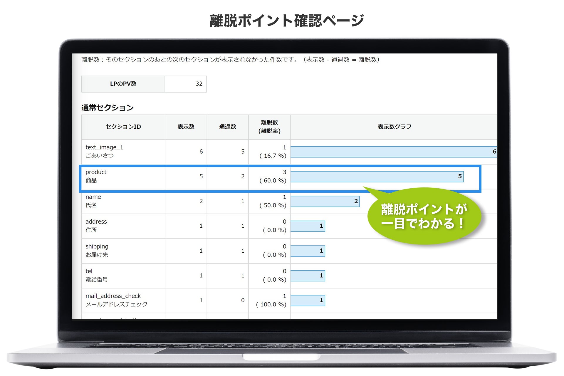 チャットのシナリオ設計は、テキストやカラー、シナリオの順番、表示までの速度などノーコードで自由に設定が可能です。また、消費者がどの項目で離脱しているかが一目で分かる分析機能を備え、離脱ポイントのテキストの文面や、シナリオの順序変更、表示速度の変更など、様々な角度からチャットでの購入フォームの最適化(Chat Entry Form Optimization)を可能としています。