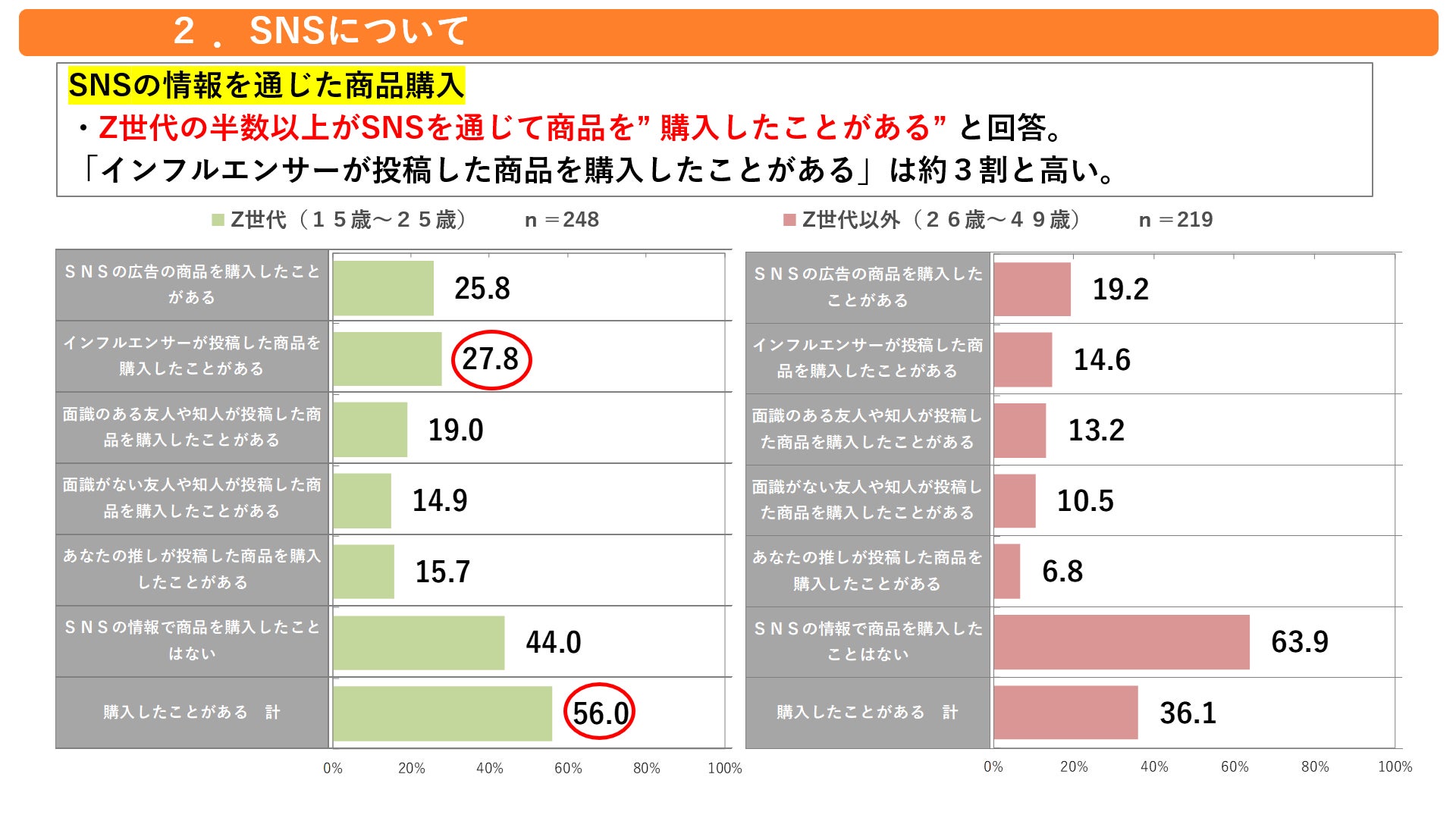 Z世代の半数以上がSNSを通じて商品を購買(56%)