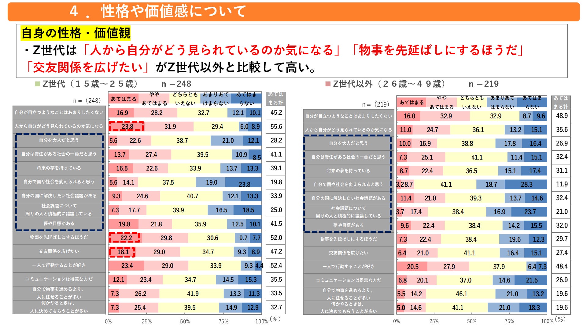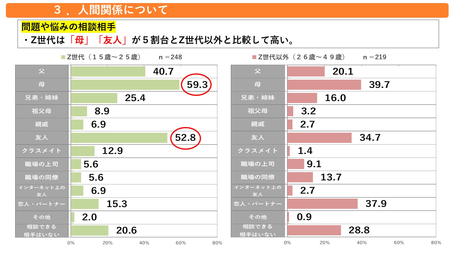 4.調査対象:Z世代(15歳~25歳:248人) 、Z世代以外(26歳~49歳:219人)※比較対象として調査