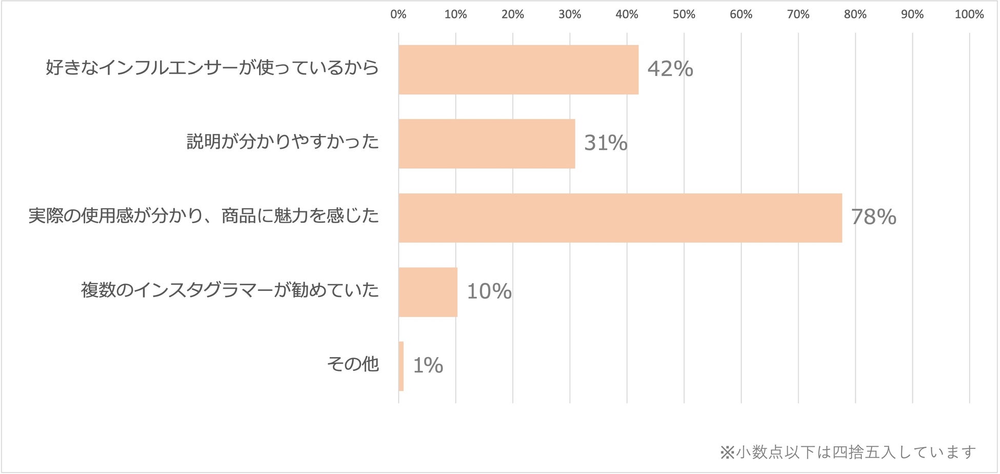 なぜ、インフルエンサーの紹介する商品を購入したのか、購入しなかったのかを深追いして調査した。