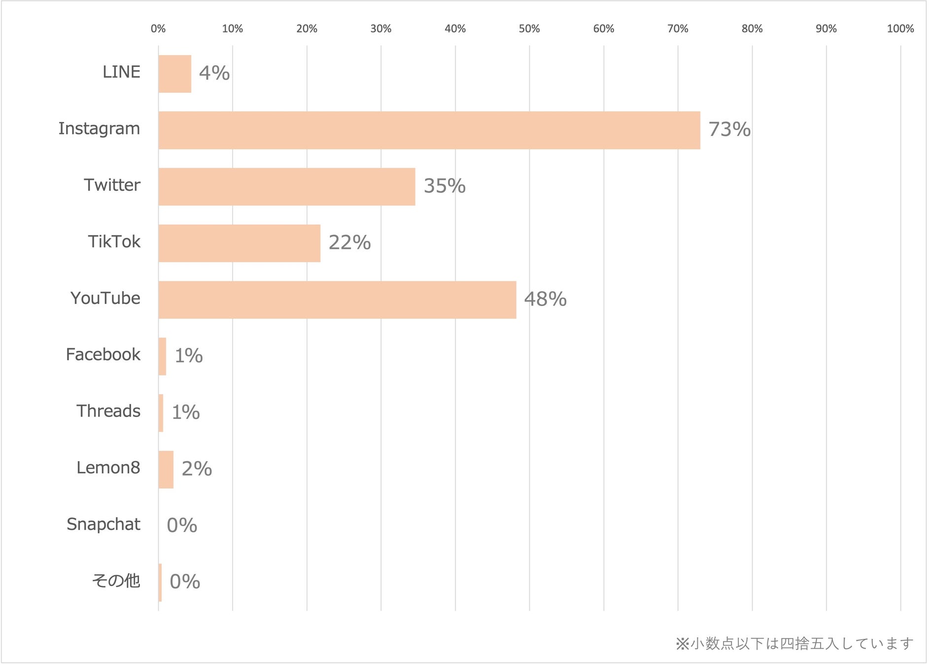 次いで、利用率が高いSNSは「Instagram」「Twitter」「YouTube」となっている。