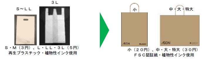 イオンは10月5日(木)より順次、全国の総合スーパー「イオン」「イオンスタイル」全店舗(合計 523店舗)の、衣料、日用品・暮らしの品売場で提供している有料プラスチック製レジ袋を、紙製レジ袋に切り替えます※1。