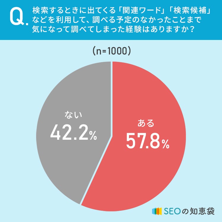 57.8%の方が、検索するときに出てくる「検索候補」が気になって予定になかったことまで調べた経験がある、と回答しています。