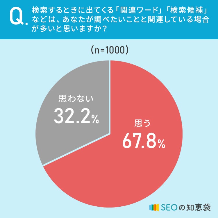 67.8%の方が、検索するときに出てくる「関連ワード」「検索候補」などは「調べたいことと関連している場合が多いと思う」と回答しています。
