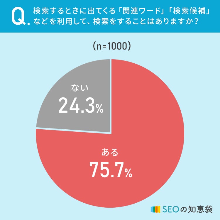 75.7%の方が、検索するときに出てくる「関連ワード」「検索候補」などを利用して、検索をすることが「ある」と回答しています。