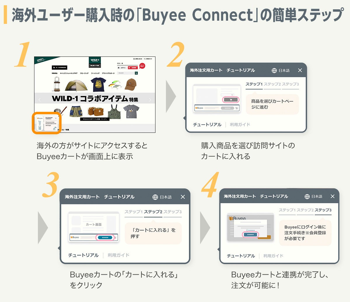 「WILD-1 オンラインストア」 はキャンプや釣り、トレッキングなど様々なアウトドアシーンに対応した商品を展開するアウトドアショップ「WILD-1(ワイルドワン)」(国内24店舗・2023年8月現在)のECショップです。「WILD-1」各店舗では、NB・PB合わせて常時約3万点のアウトドア用品を取り扱っており、その豊富な商品展開で国内外のユーザーにも人気が高く、これまでに海外では韓国、台湾、中国で実店舗・ECでの販売を展開しておりました。今回の「Buyee Connect( https://beecruise.co.jp/infra/buyeeconnect/)」との連携により、世界118ヵ国/地域での販売が可能になります。