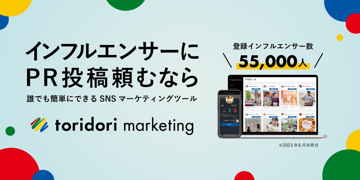 『toridori marketing(トリドリマーケティング)』はインフルエンサーマーケティングを、どのような業種・規模の企業様でも手軽に始めることができるサービスです。