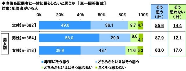「老後も配偶者と一緒に暮らしたい」男性87.9%、女性83.0%