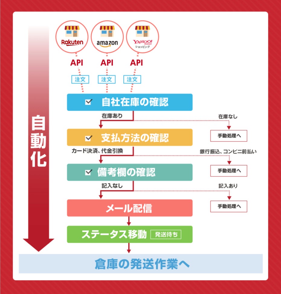 商品マスターが不要であるにも関わらず、商品ごとの配送方法変更が自動化できるなど、多数の店舗様にご支持いただいている機能です。