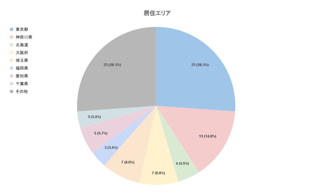Web広告運用人材の全体平均年収(約623万円)を上回っているエリアは東京都・神奈川県のみ。また、東京都、神奈川県、北海道、大阪府、埼玉県、福岡県、愛知県、千葉県の順でWeb広告運用人材の居住割合が大きく、これら8都道府県だけで全体の3/4を占めており、都心と東京都の近郊にWeb広告運用人材が集中しています。