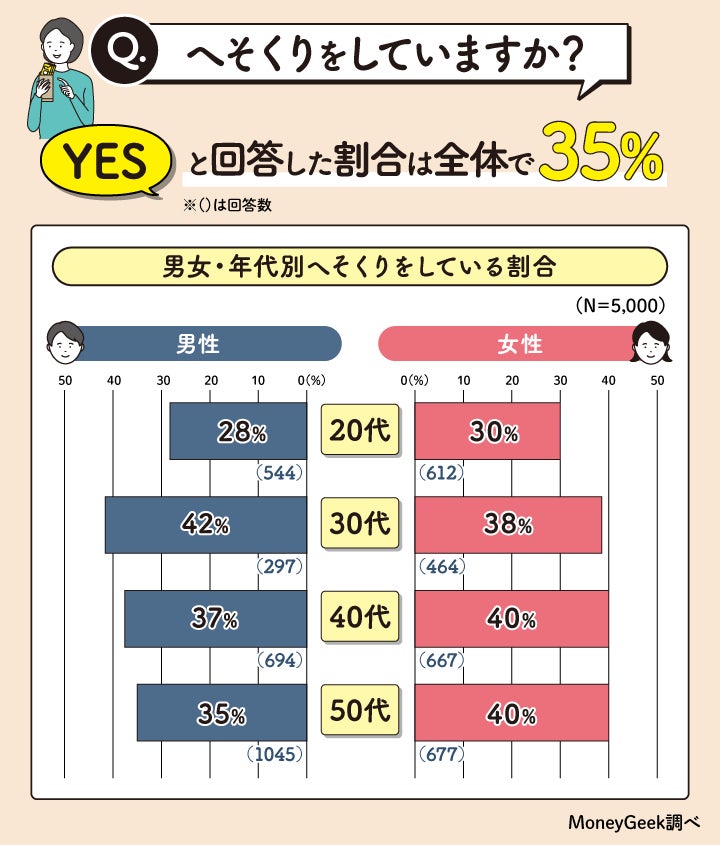 その結果、へそくりをしていると回答した人は全体の35%いました。