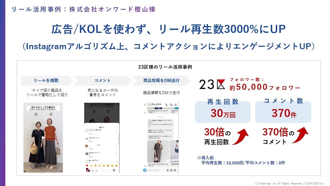 インスタライブの結果から作成したリール動画では、再生回数が通常と比べて3000%にアップとなりました。