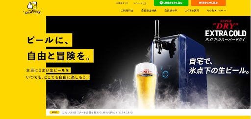 サイトの特徴  「THE DRAFTERS(ドラフターズ)」は、生ビールサーバーの定期配送サービスです。集客やCRMなどのマーケティング施策はLINEに集約しており、「W2 Repeat」を導入して作られたECサイトは、そのハブとなる役割を担っています。会員のお客様と共に「“本当にうまい生ビール”を、いつでもどこでも楽しめる世界を創る」という世界観を表現したサイトデザインも特徴です。