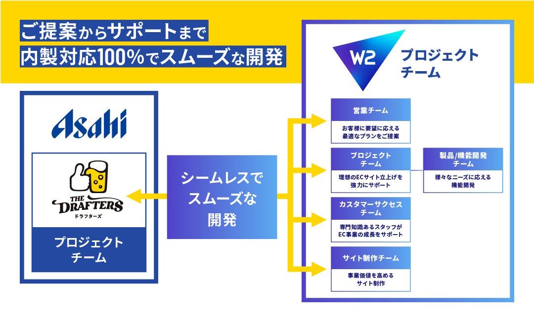 EC事業の「成功」にこだわる最先端ECプラットフォームを展開するW2株式会社(本社:東京都中央区、代表取締役CEO:山田 大樹、以下W2)は、アサヒビール株式会社が運営する家庭用生ビールサービス「THE DRAFTERS(ドラフターズ)」のECサイトに、D2Cリピート通販向けECプラットフォーム「W2 Repeat」を導入いただいております。
