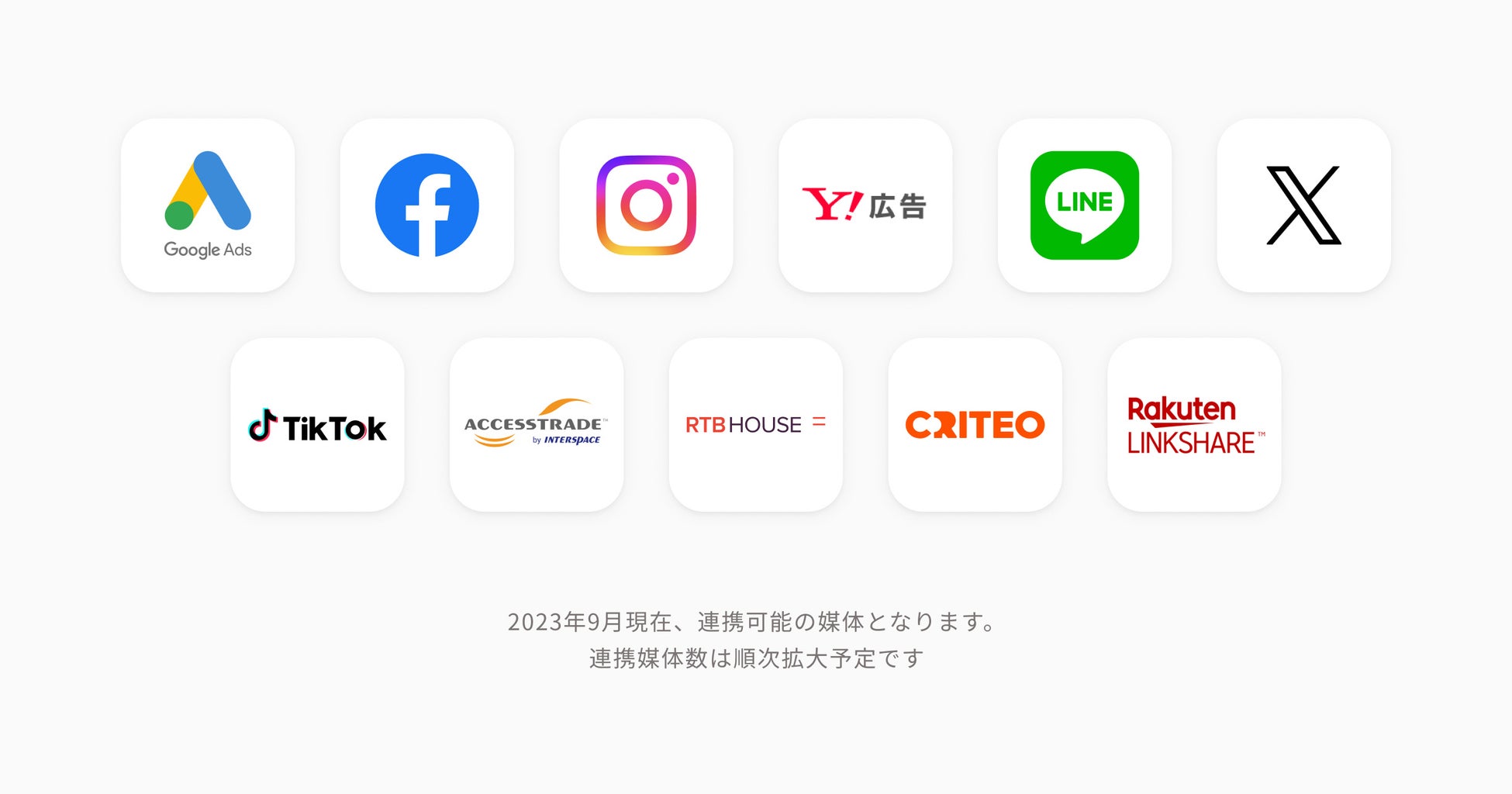 検索、動画、アフィリエイトを含む様々な広告媒体に対応。媒体レベル、キャンペーンレベル、パラメーターレベル、出稿金額、各媒体指標など、さまざまな水準でレポートの自動取込が可能です。