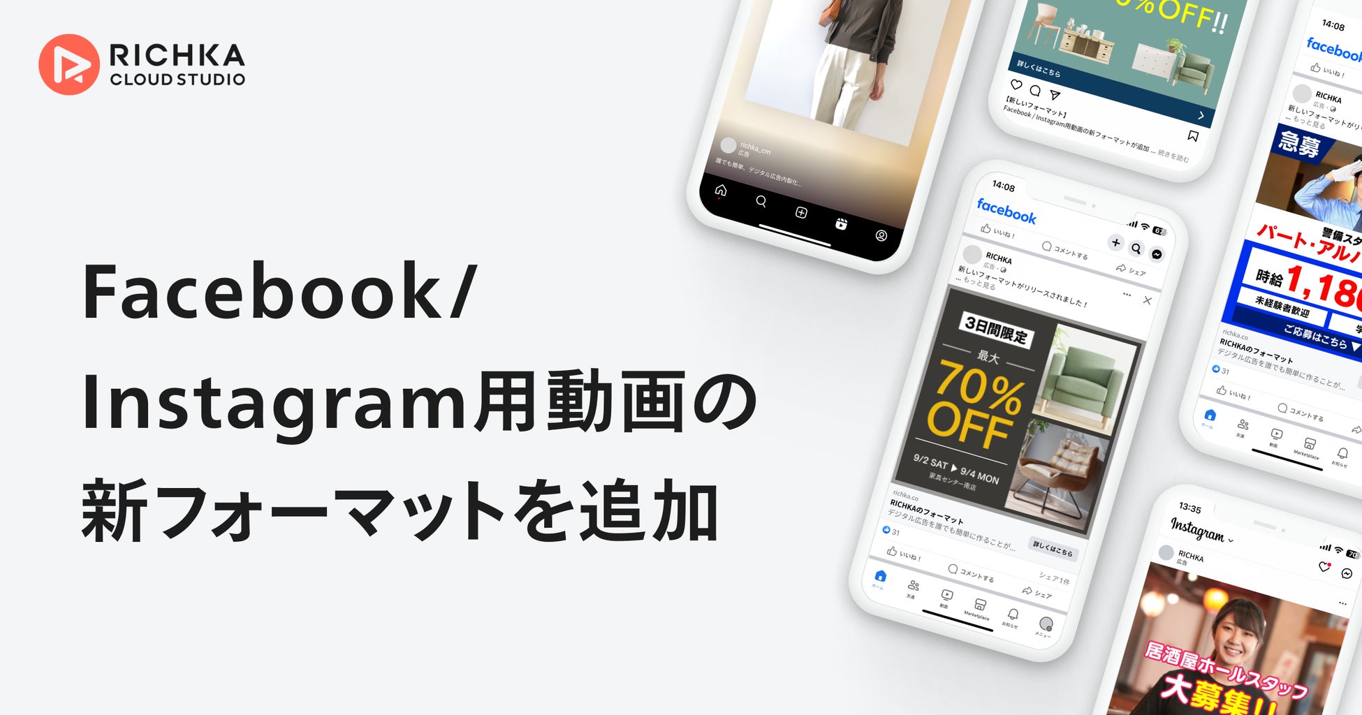 株式会社リチカ(本社:東京都渋谷区 / 代表取締役:松尾幸治/以下、当社)は、運用型クリエイティブクラウド「リチカ クラウドスタジオ」のFacebook/Instagramに特化した新しい動画フォーマットを追加しました。