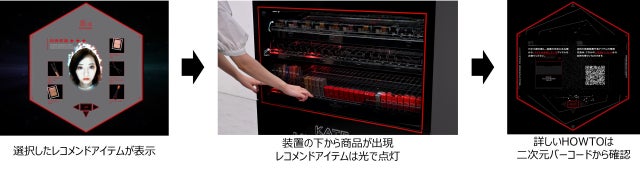 「KATE MULTIVERSE HOLE」の下部分から商品が出現し、レコメンドアイテムは光で点灯。