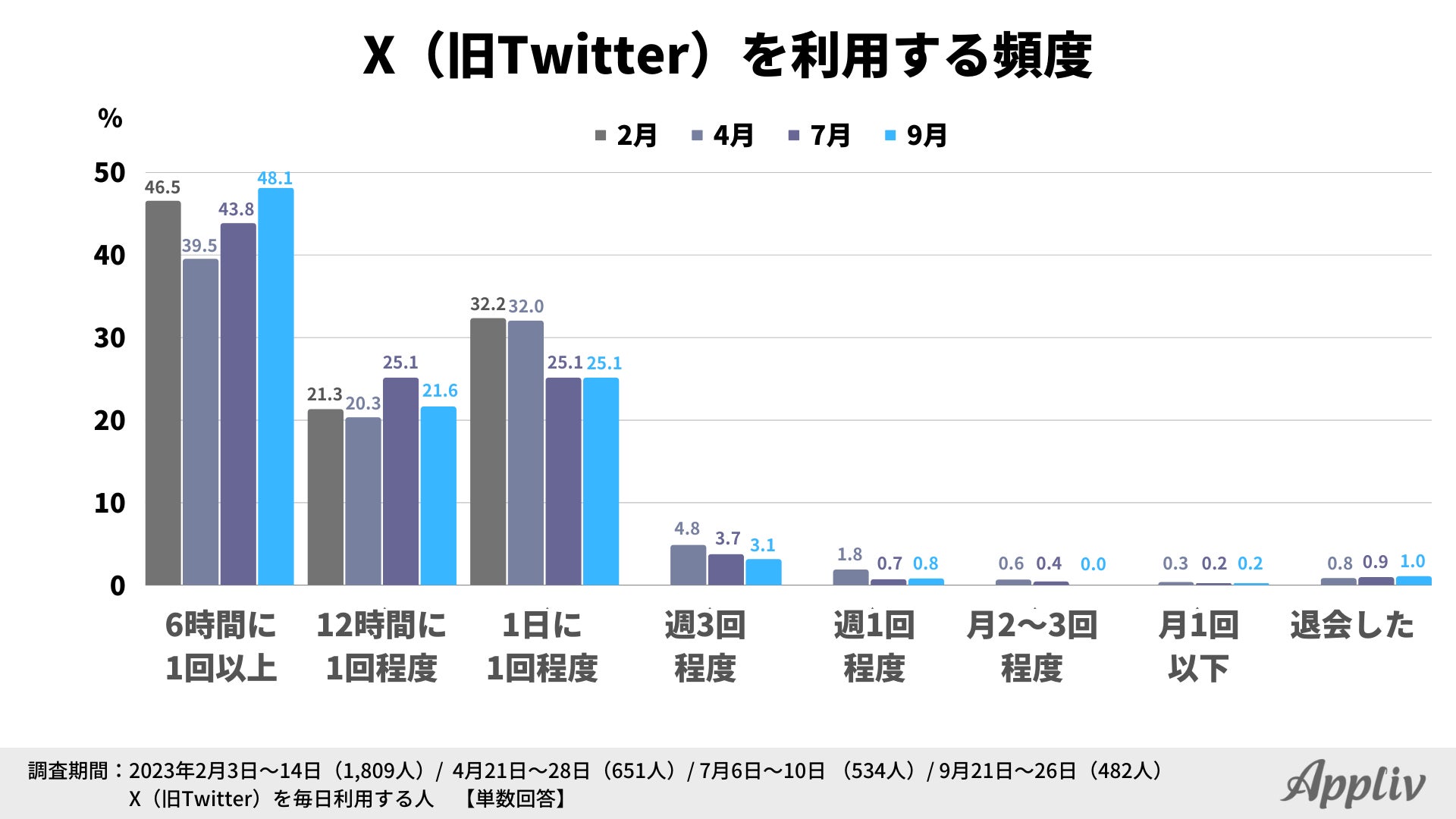 • X(旧Twitter)を毎日利用する割合は6ヶ月間ほぼ変わらず