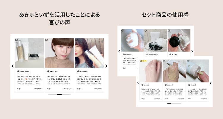 あきゅらいずは、2023年1月にLetroを導入しUGCの運用を行うことで、顧客獲得効率の改善を図ってきました。継続的にUGCに向き合い続けるなかで、お客様が「商品を通じて得られる体験」を把握することができ、これらを有効利用することでUGCの事業貢献価値をより高めることができるのではないかと考えました。