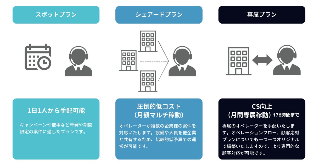 - スポット対応から専属コンタクトセンターまで、幅広いプラン