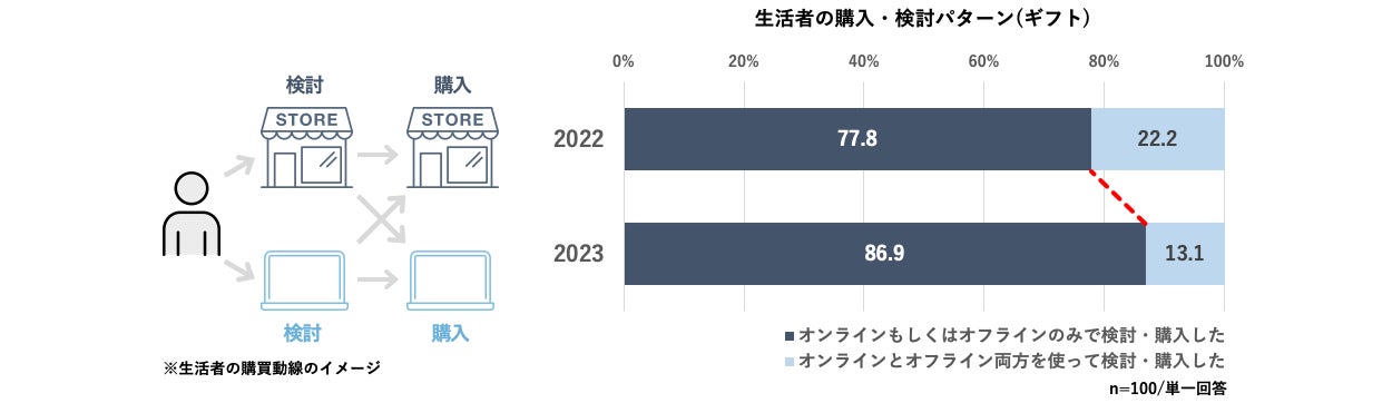 新型コロナウィルス感染症による行動制限の自粛が解かれたことを背景に、生活者の購買行動の変化について、ECと店頭を横断した生活者の購買行動調査を昨年に引き続き実施しました。