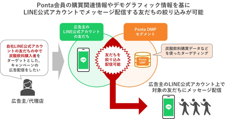 ※LINE公式アカウント上でPontaデータによるターゲティングが可能な最大配信ボリュームは、配信先となる広告主企業のLINE公式アカウントの友だちとPontaデータがマッチしたID数となります
