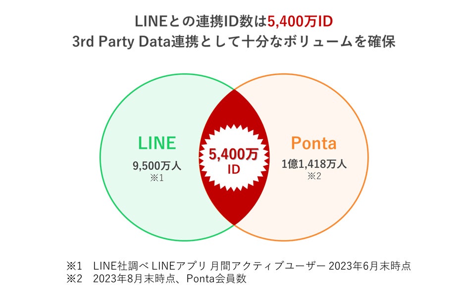 ※LINE広告上でPontaデータによるターゲティングが可能な最大配信ボリュームは約5,400万IDです(LM調べ、2023年8月時点)