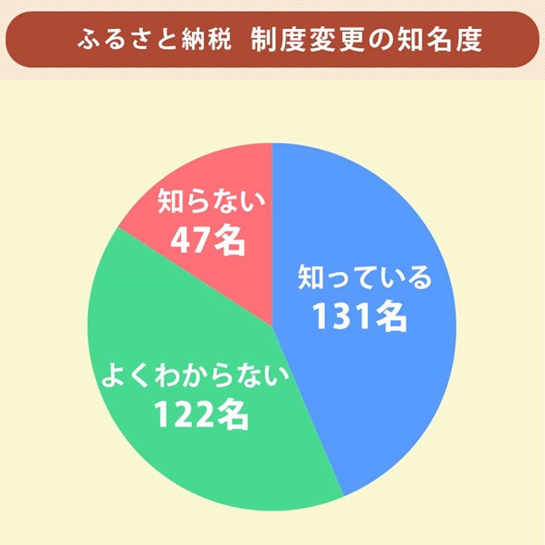 ふるさと納税の制度変更について、169名が『知らない』と回答し、知っていると回答した利用者は131名でした。