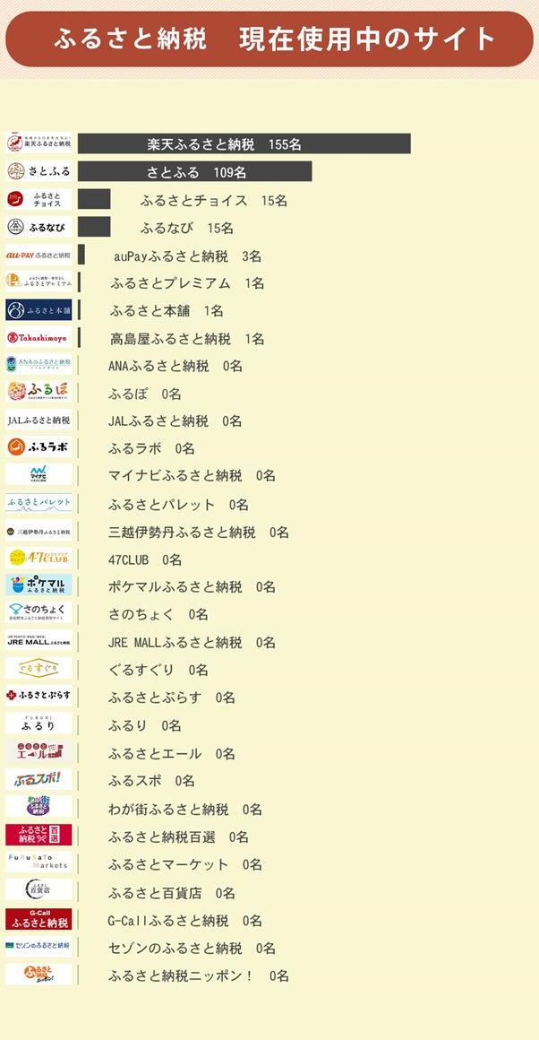次に利用者の多い『ふるなび』『ふるさとチョイス』の利用者は、合わせて78名。